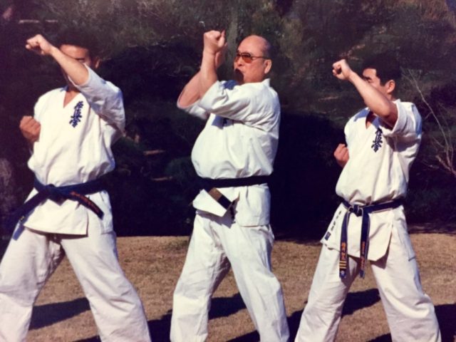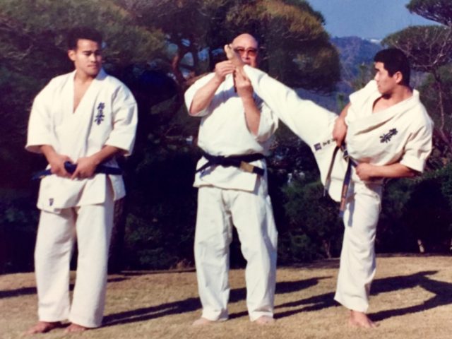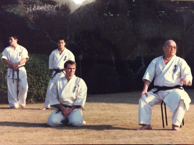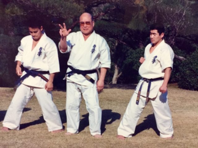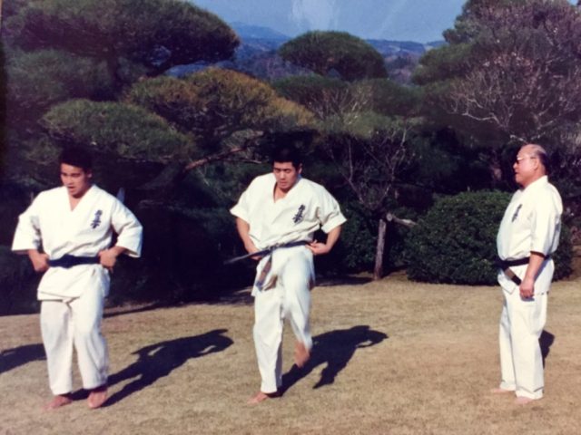 写真は極真空手初の「教則ビデオ」を作るため、大山総裁が国内外の師範方を招集され、「この基本と型で統一する」という確認、お披露目が伊豆の大仁で行われた時のもの。