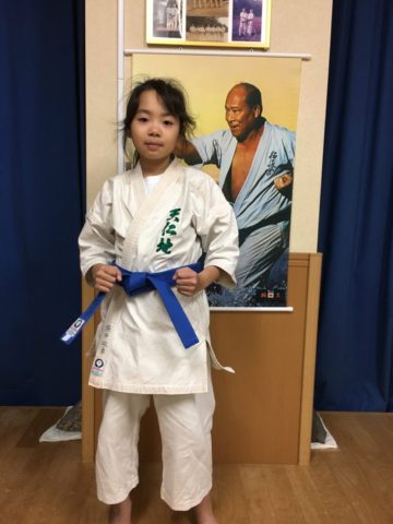 ☆皆さんに気に掛けて頂いている少年部の女の子、まだ頑張っていて、先日昇級して青帯になりました^_^。