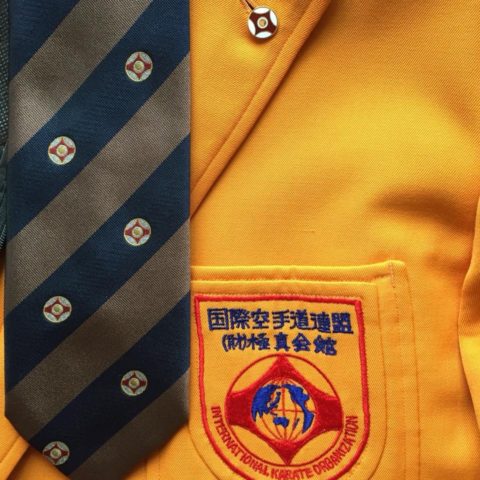 久しぶりに懐かしい極真ブレザーを引っ張り出しました。空手着は当然「仁心道場」です。