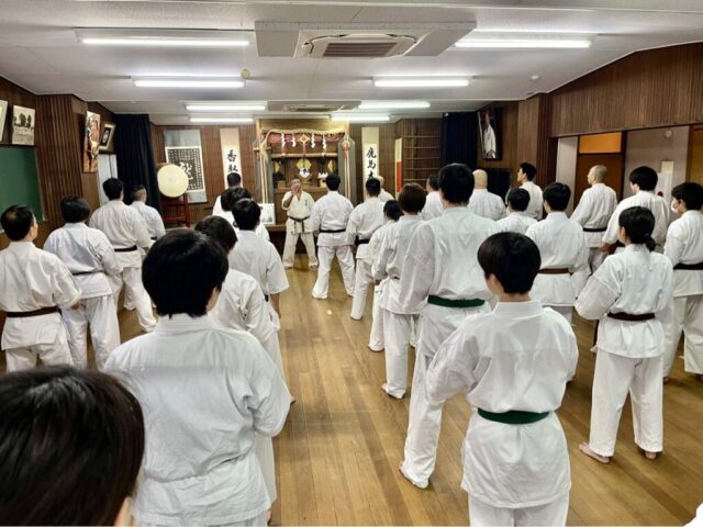 極真空手創始者「大山倍達」総裁の稽古体系をもとに、基本・移動基本・型・三本組手を約3時間行いました。