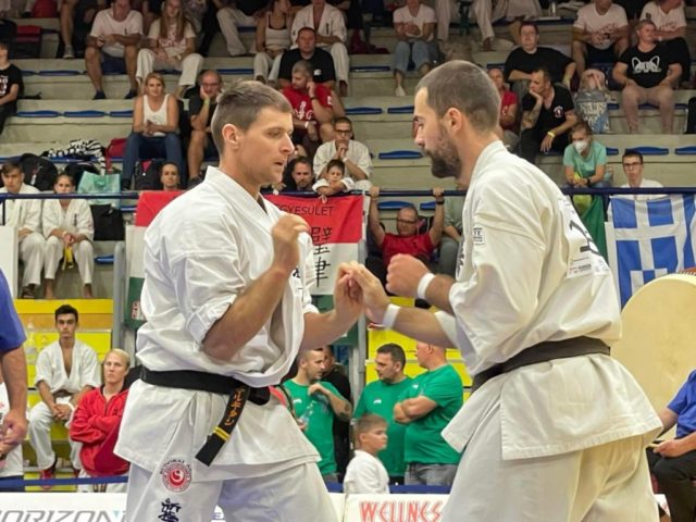 ヨーロッパ各国から集まるこの大会には幼年〜壮年、体重別による様々な階級の組手トーナメント、そして型試合があります。